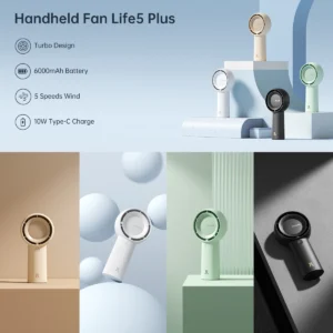 JISULIFE Personal Handheld Fan features a high-performance motor and optimized air duct to improve wind power while minimizing noise. Compared to other handheld fans, it has a faster speed (6100 r/min) and stronger wind (4.8 m/s).